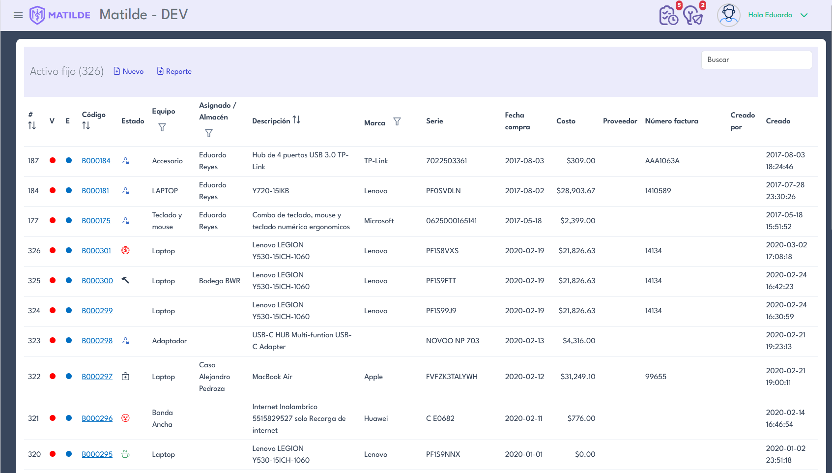 | Ctas. por Pagar | ✓ | ✓ | ✓ |